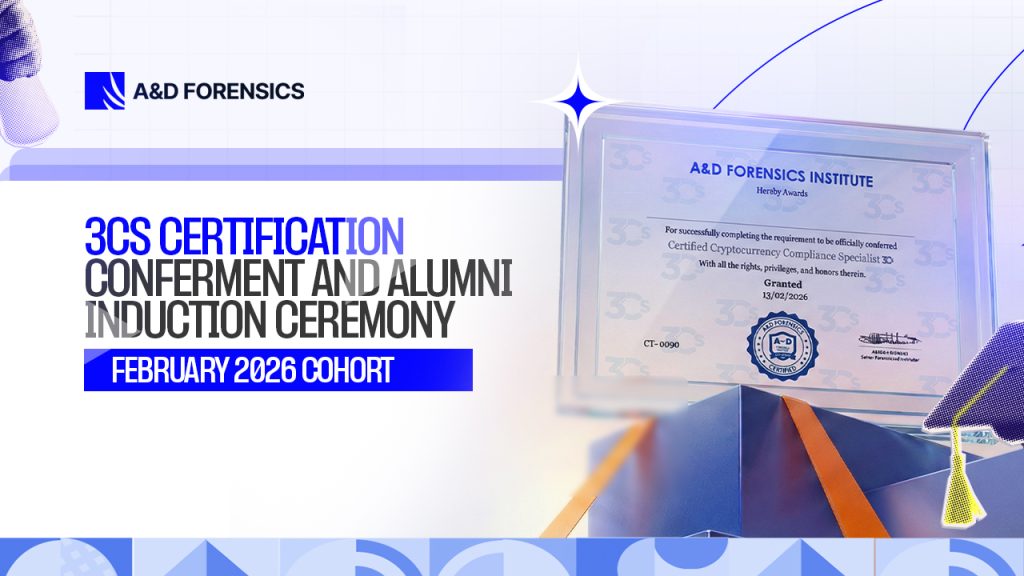A&D Forensics Concludes First Virtual Certified Crypto Compliance Specialist (3CS) Training with Certification Conferment and Alumni Induction Ceremony.